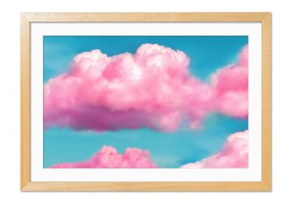 Amazoncom Pink Fluffy Clouds Wood Color Frame Art Print